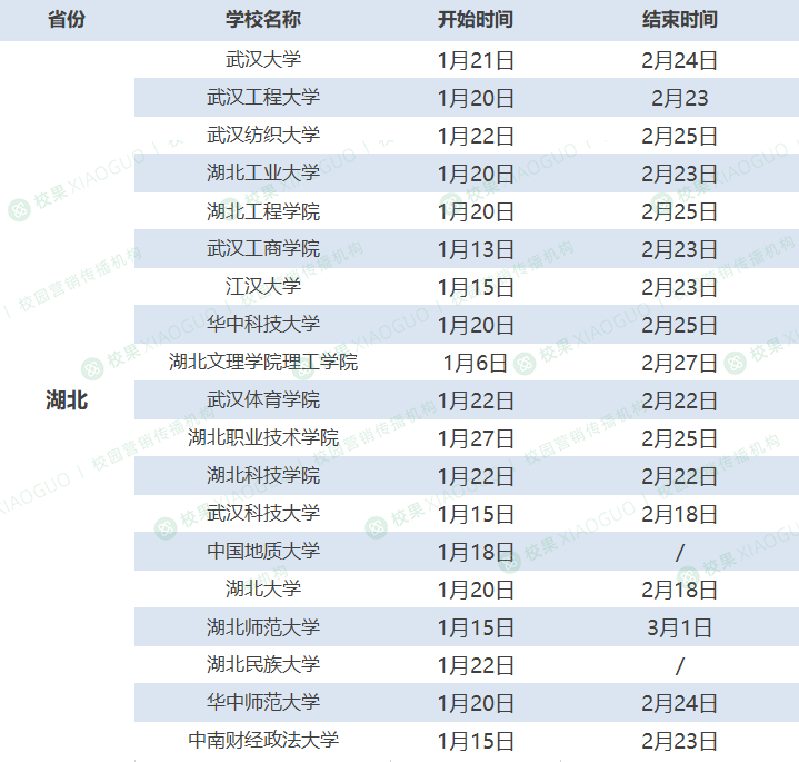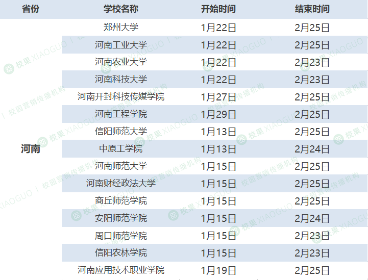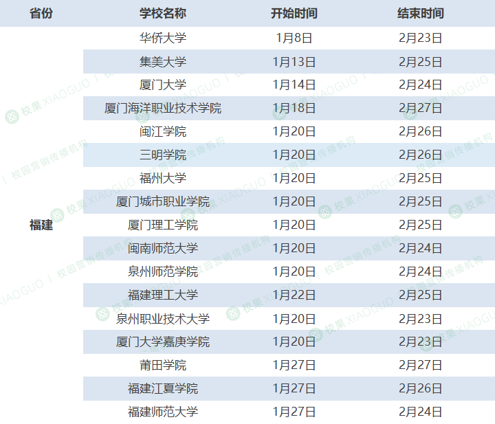 最新收藏!全国29省市500余所高校2024寒假放假时间汇总