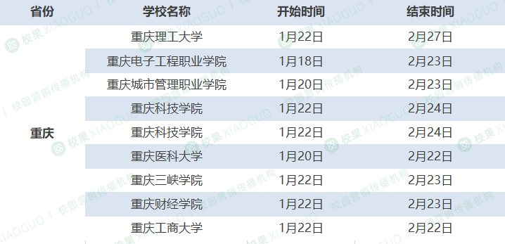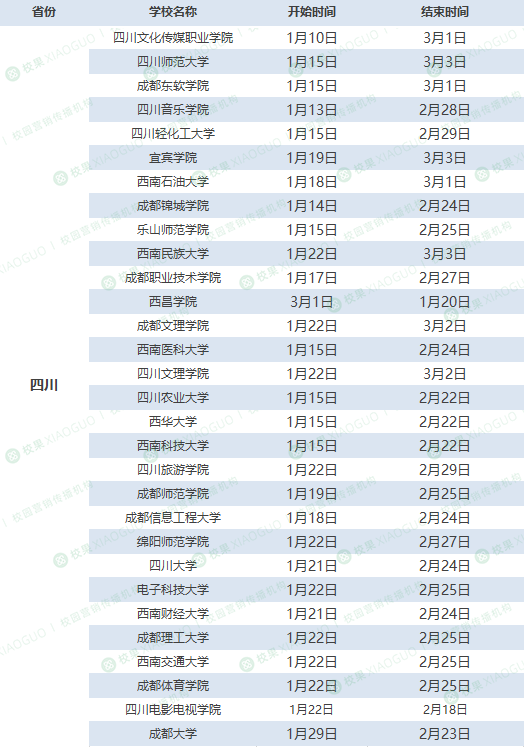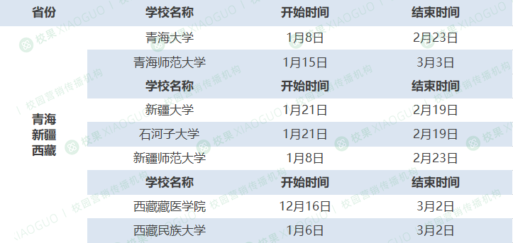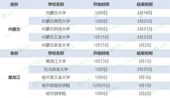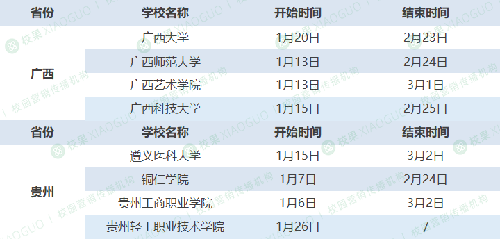 说明:本表格数据整理自各校官微、校历和地方网等,仅供参考。由于种种原因,部分院校假期时间可能有所变动,实际情况请以学校最新通知为准。本表为不完全盘点,部分院校寒假时间暂未收集到,如有错漏或补充,欢迎到评论区指出。