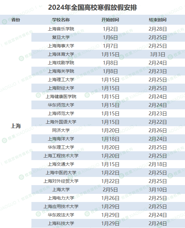 以上就是全国各地高校2024年寒假放假时间和开学时间的整理汇总!如有出入,以学校实际最新放假安排时间为准!希望大家提前做好准备!